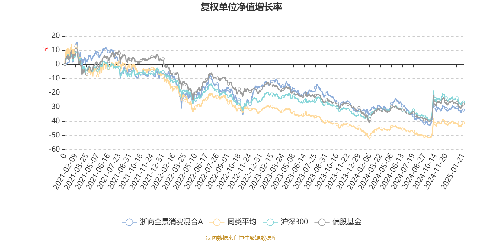 截至1月21日,浙商全景消费混合A近三个月复权单位净值增长率为-0.58%,位于同类可比基金256/536;近半年复权单位净值增长率为5.86%,位于同类可比基金347/536;近一年复权单位净值增长率为0.47%,位于同类可比基金414/500;近三年复权单位净值增长率为-28.48%,位于同类可比基金142/265。